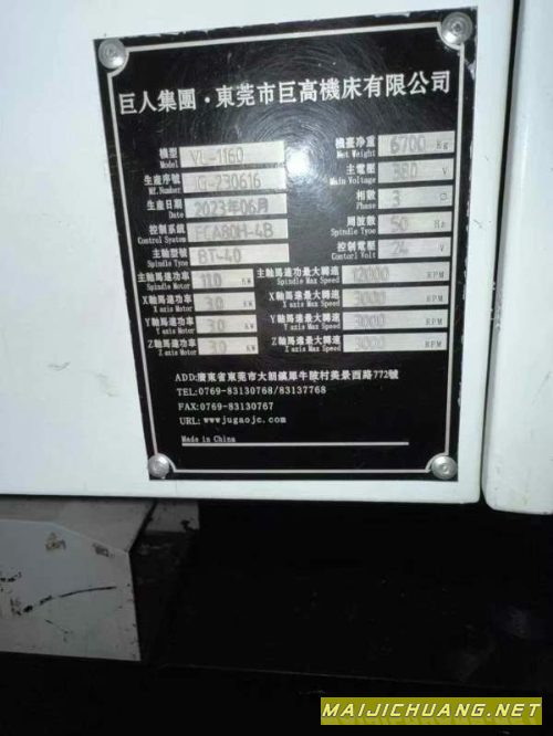 | 巨高精机1160加工中心,2023年出厂,同款三台,三菱M8. |